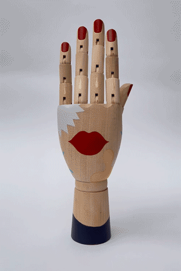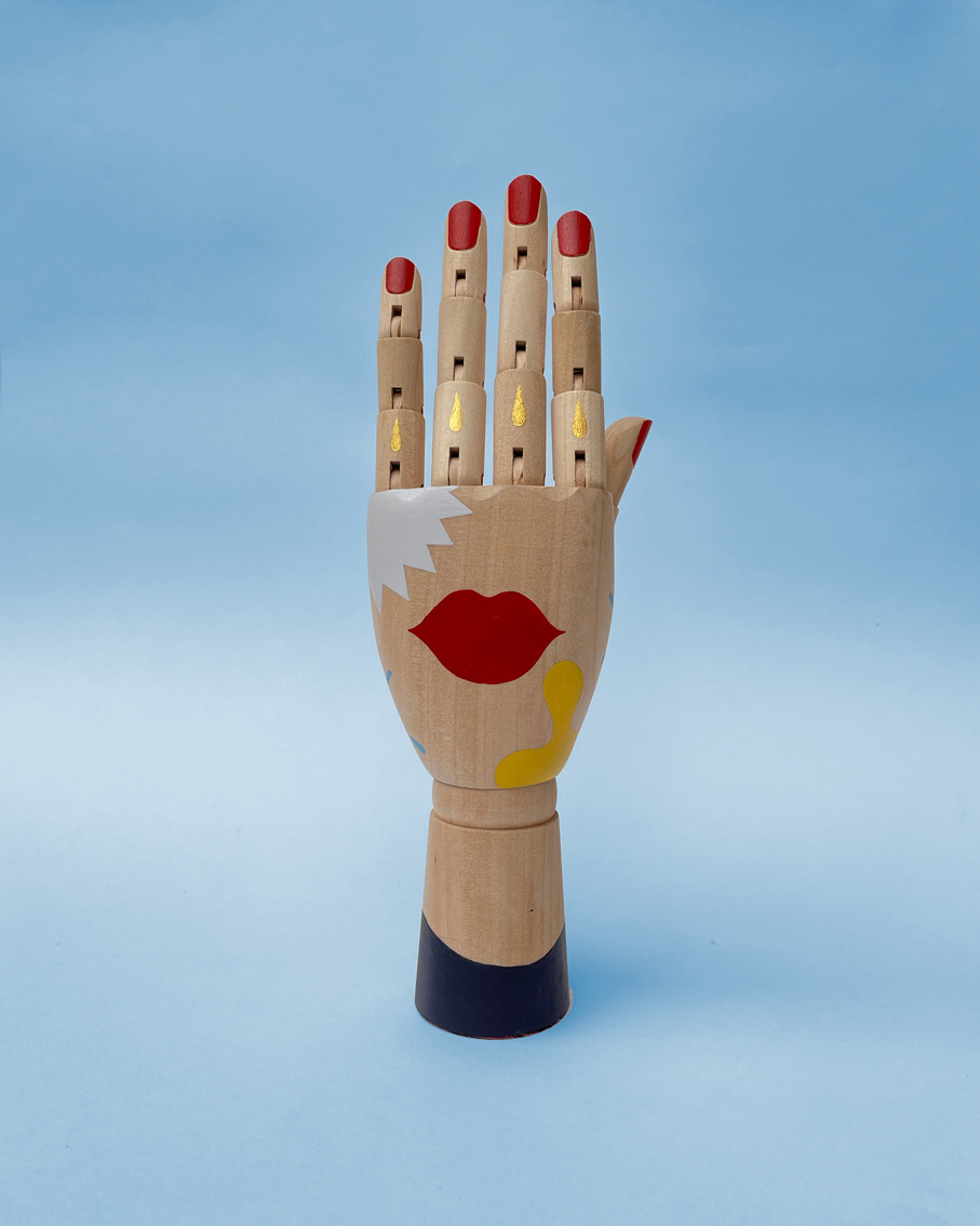 Sensualità, geometria e spensieratezza. Mano sinistra in legno disegnata e dipinta a mano con colori acrilici. /// SOLD OUT ///