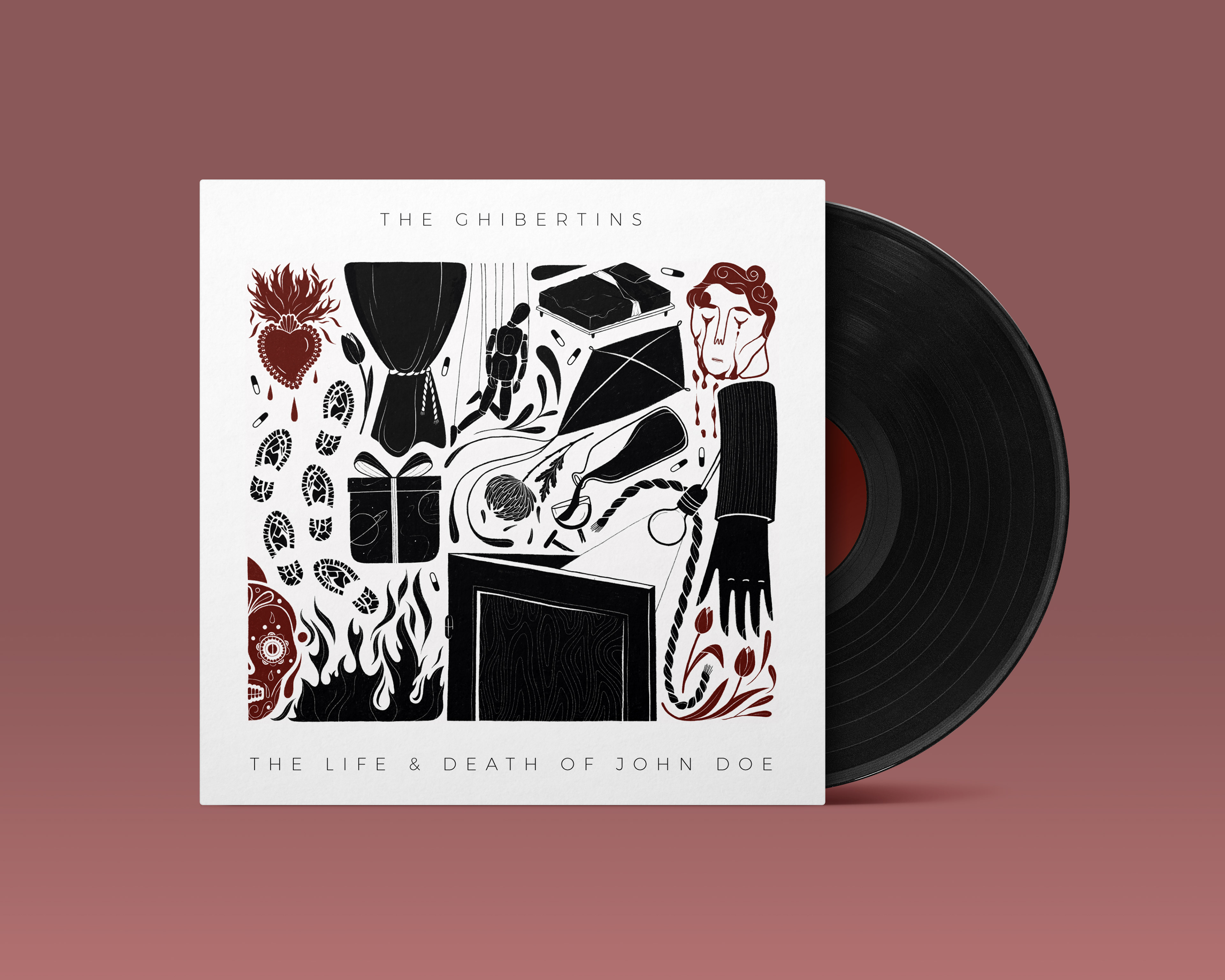 Una copertina, 11 canzoni, 18 simboli. Un disco che parla di una vita composta da segreti, sbandamenti e redenzioni. Un album formato da contrasti: amore e odio, gioia e dolore, ingenuità e saggezza, bianco e nero. Realizzazione della cover del disco "The Life & Death of John Doe" dei The Ghibertins