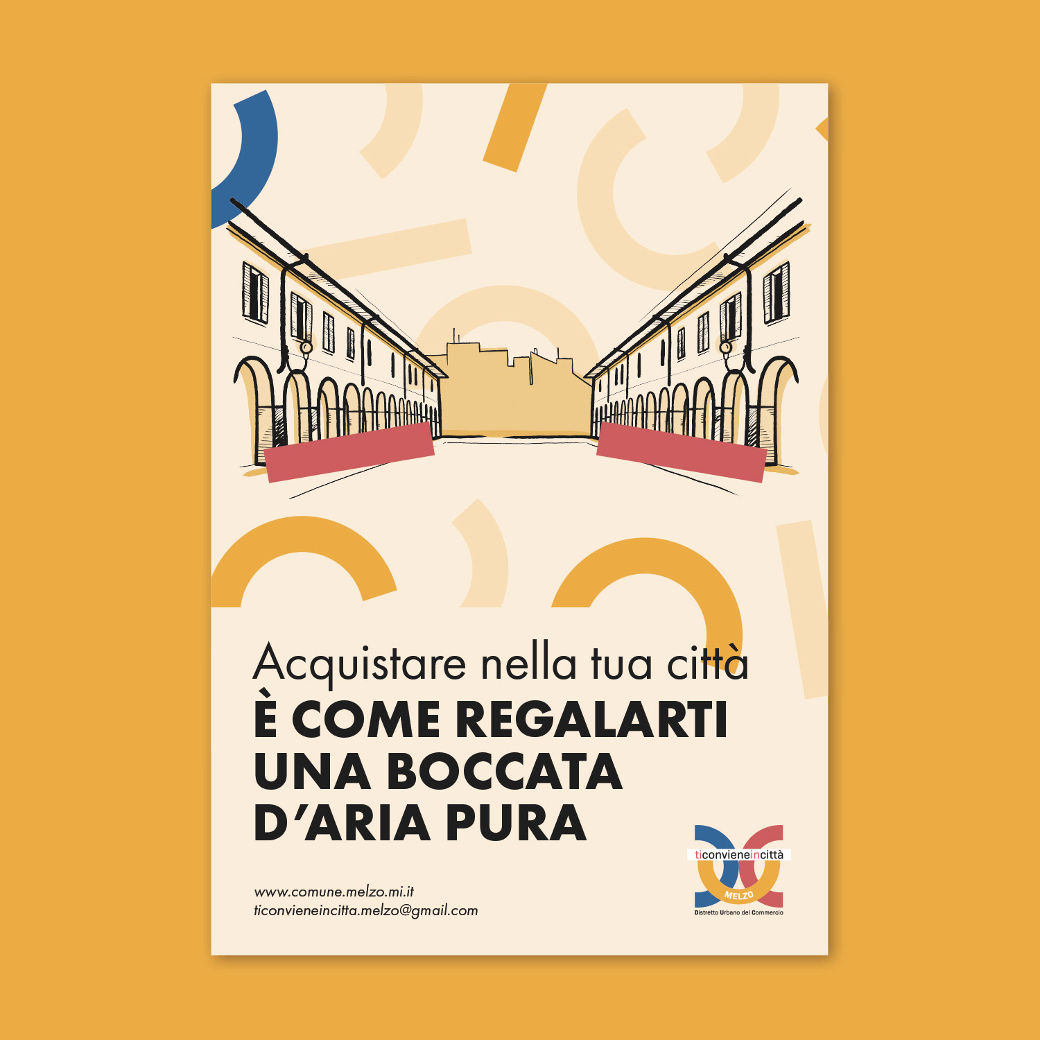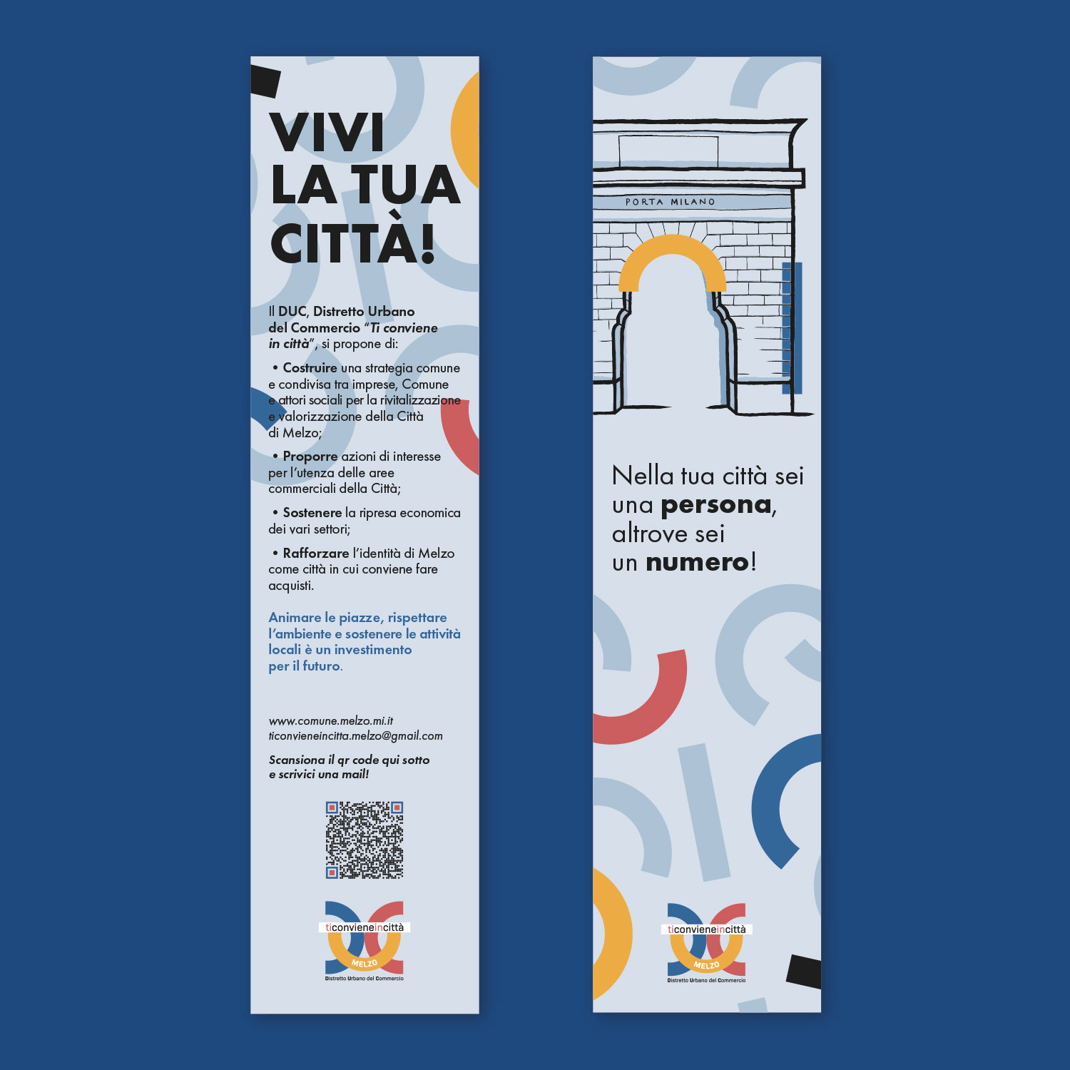 Insieme al Comune di Melzo ho realizzato l'identity per il progetto: DUC - Distretto Urbano del Commercio. Con un delicato rebranding, ho delineato un nuovo mood, più fresco e attuale, così da comunicare ai fruitori la voglia di costruite una città migliore, non dimenticando però le sue origini. Partendo dalle forme presenti nel logo e dai simboli della città protagonista, ho realizzato una serie di illustrazioni che integrano i due elementi.