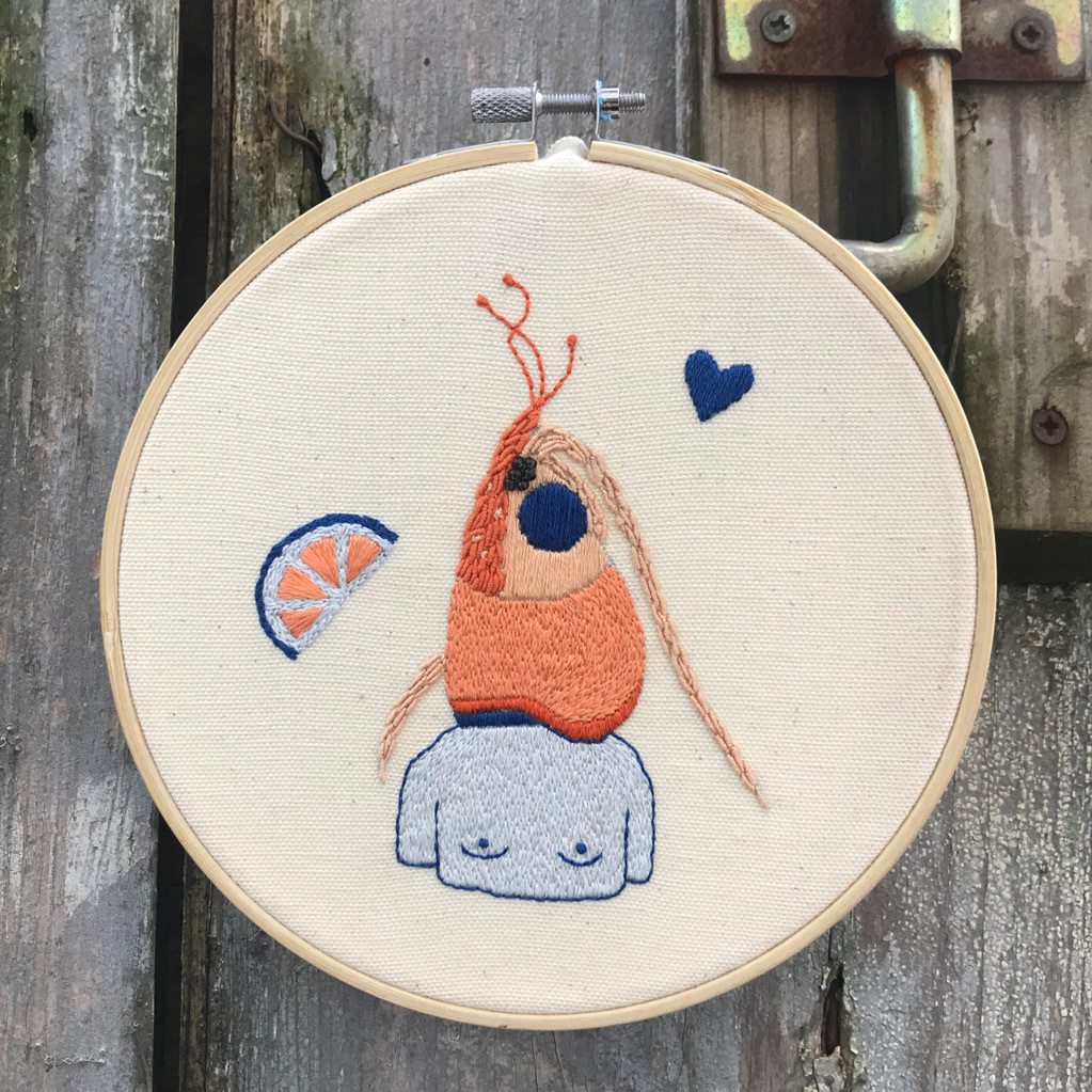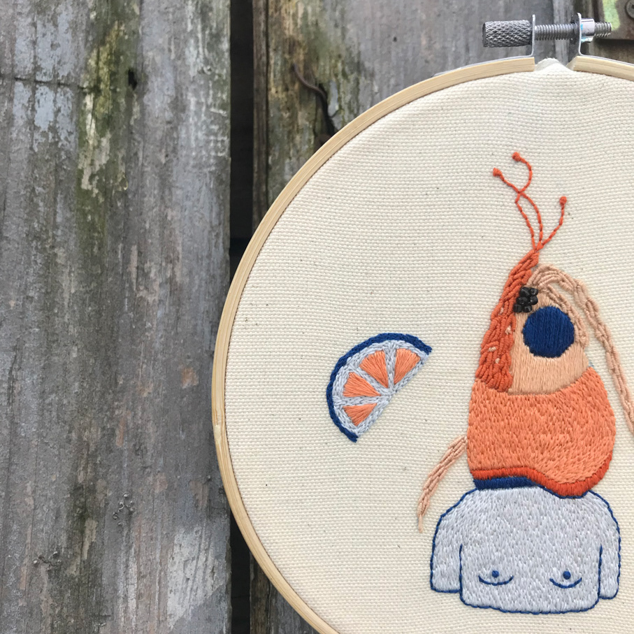 Ortigia Siracusa, Sicilia. Agosto 2019. Disegnato e ricamato a mano dopo una meravigliosa vacanza in Sicilia passata a mangiare gamberetti e gamberoni.