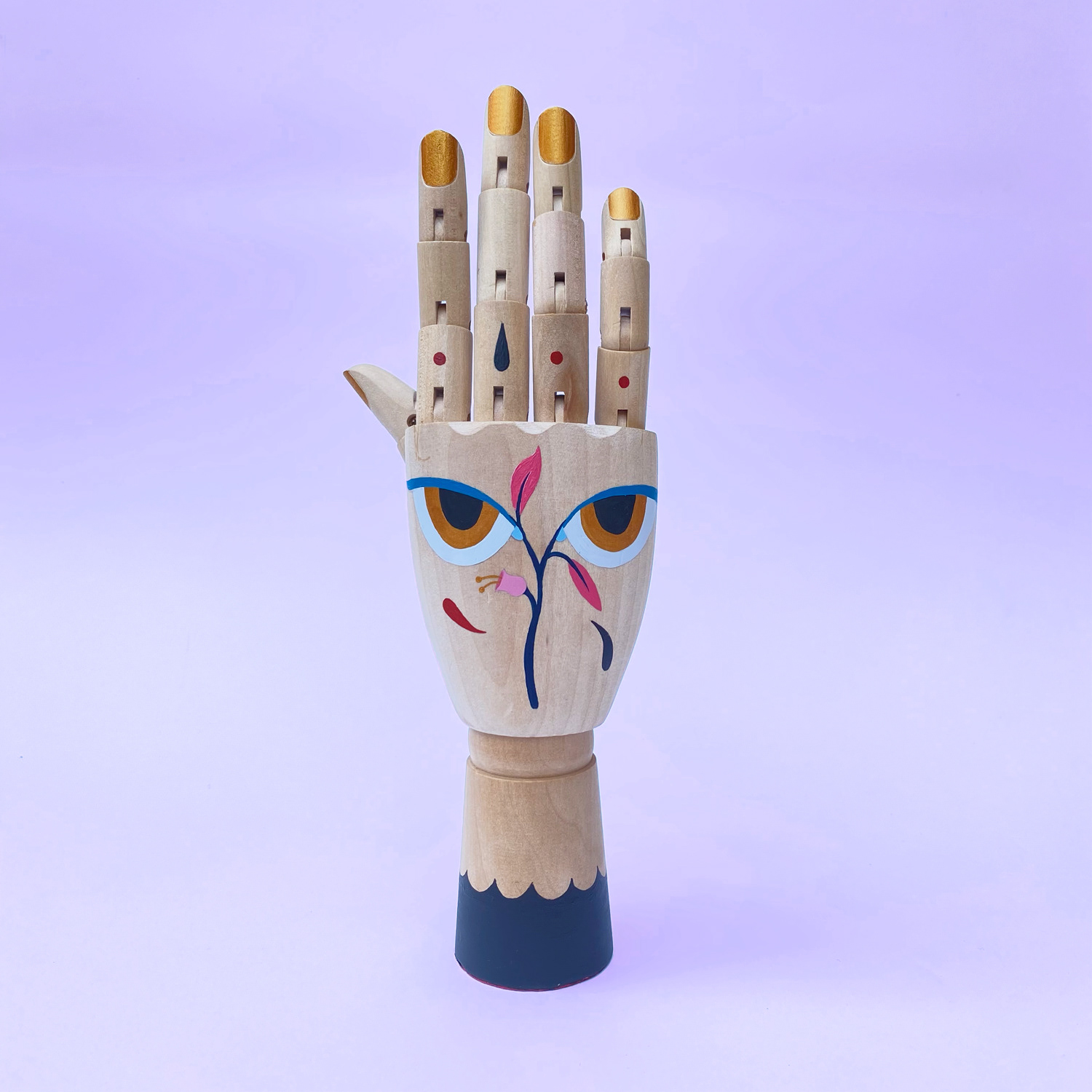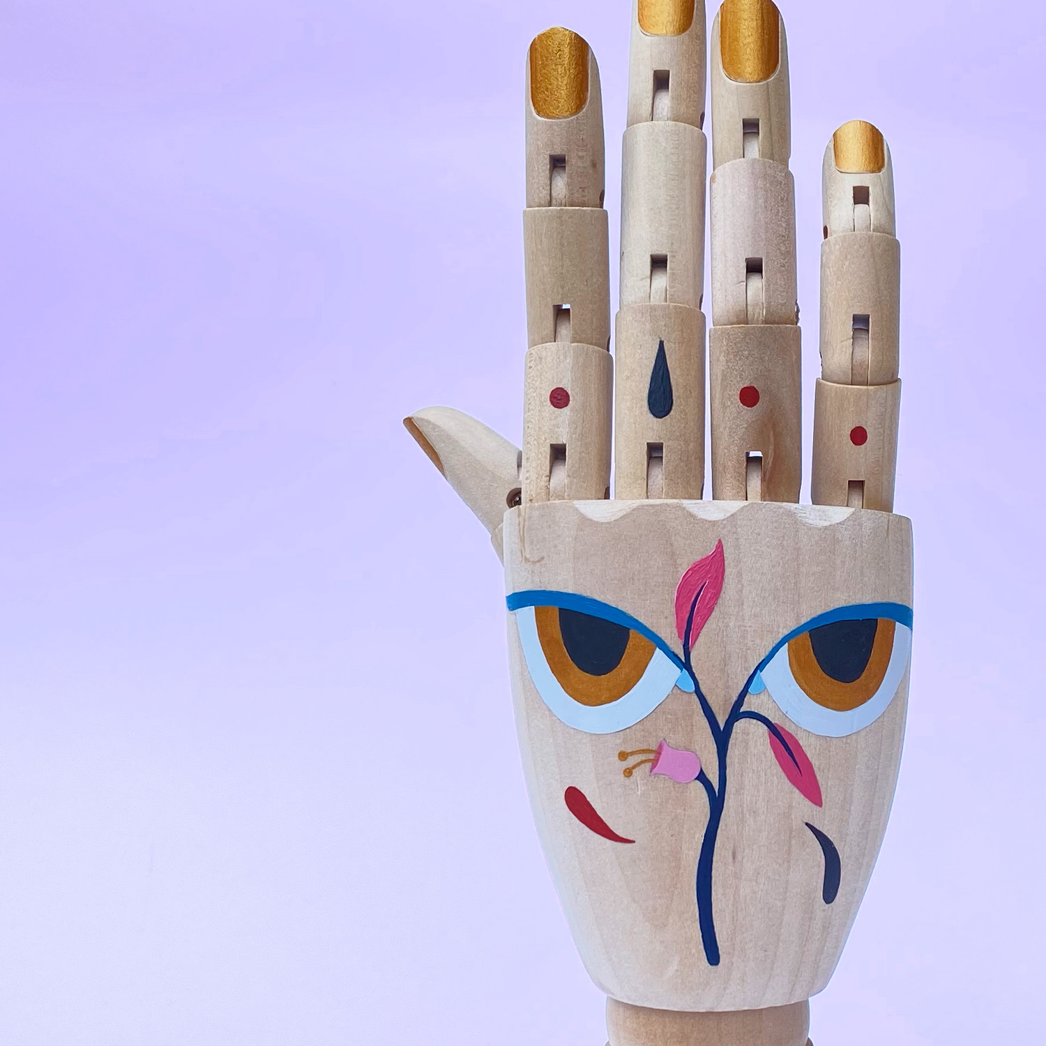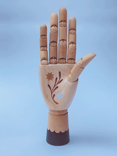 Santa Lucia. La vergine protettrice degli occhi, dei ciechi, degli oculisti. Mano destra in legno disegnata e dipinta a mano con colori acrilici. La trovate da Bit Gallery.
